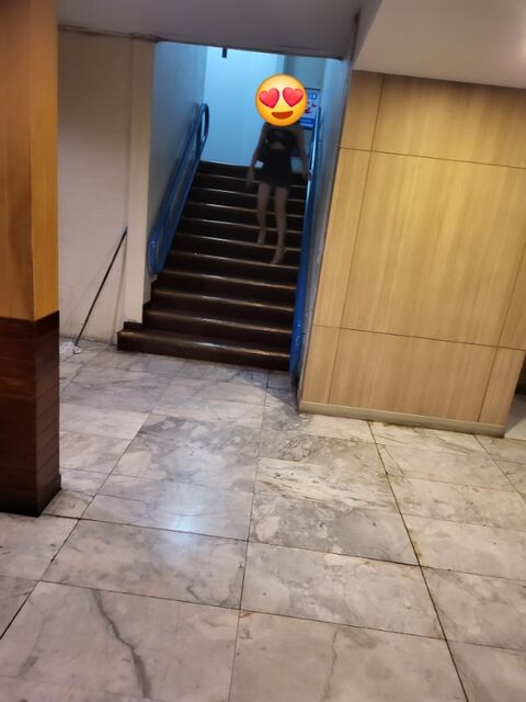 階段から女の子が1人で降りてきます。
