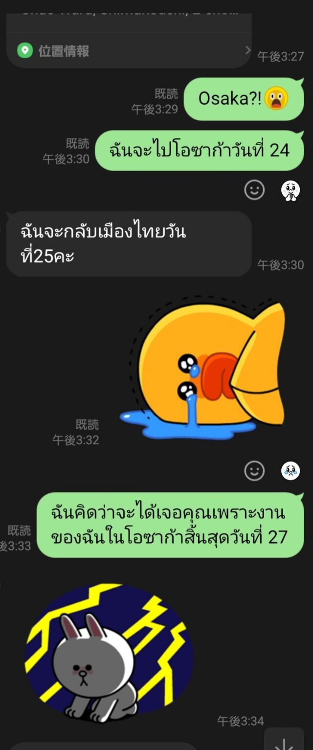 驚くのと同時に私も大阪へ出張で行くので現地で会おうと場所を聞き、調整しようと思ったら彼女がタイへ帰る日程とカスリ。。