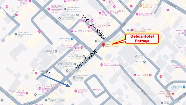 パタヤで遊ばれている方ならすぐにお分かりだと思いますが、ブッカオ沿いでソイ・ブーメラン入口が目の前。