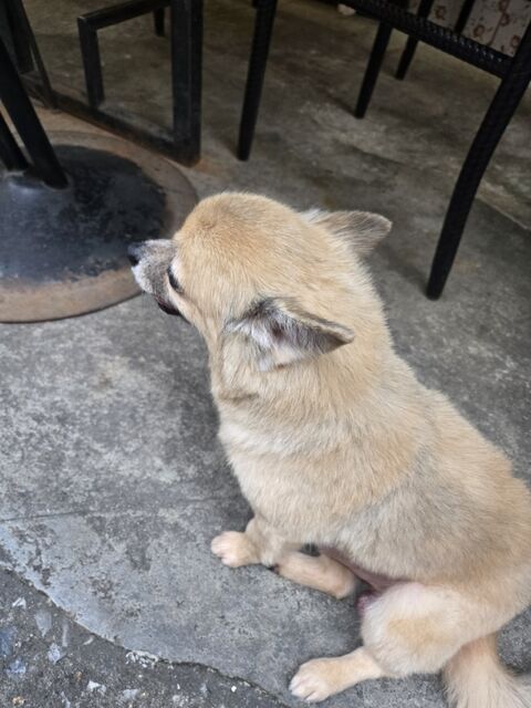 それで朝食を摂りに部屋を出るとホテルの前のバービアで飼っているワンちゃんが。