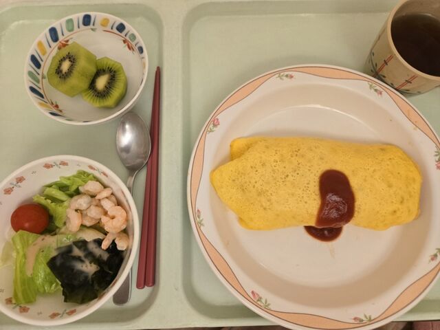 こんな一見美味しそうに見える食事も出ますが、「ソースかけてぇ〜」とか「醤油欲しいぃ〜」みたいな。