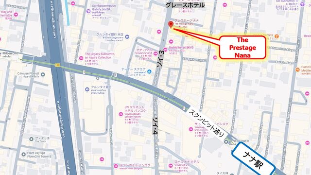 ナナとアソークのほぼ中間地点ですが、どちらへ行くにも一旦スクンビット通りには出なくてはいけません。
