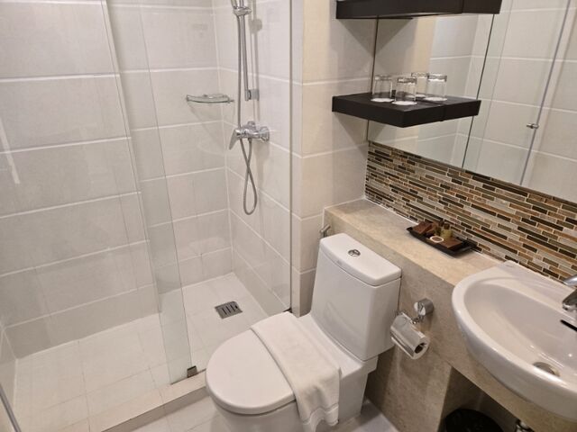 シャワーもしっかりブースになっており、水ハネの心配もありませんが、トイレットペーパーの設置位置はどうにかならんだろうか。。