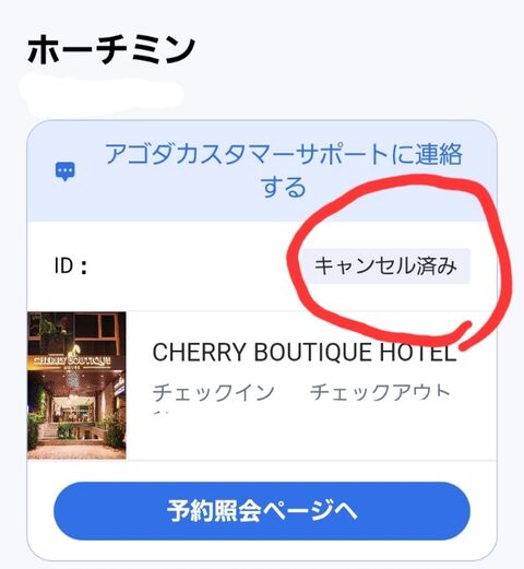 帰国後、アゴダの予約を確認してみたらキャンセルになっていました。