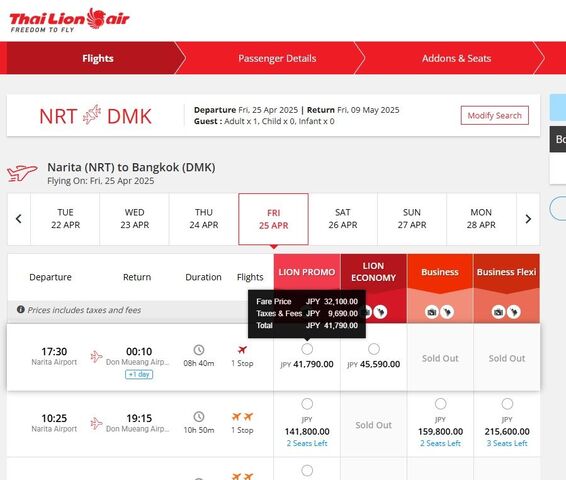 ドンムアン利用ですがエアアジアより安い場合もありますので安値優先で考える場合はライオンエアーのアプリを持っておき、航空券購入の際は検討してみるのもアリです。